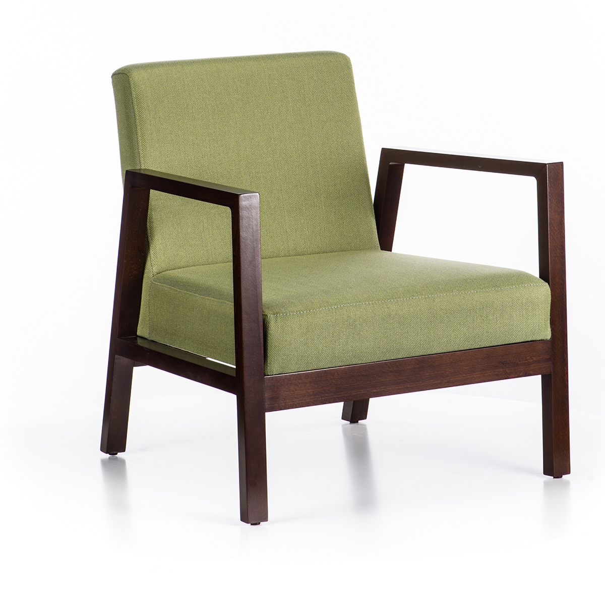 The structure of the armchair is made of beech mass construction. Upholstery and wood color at customer's request.