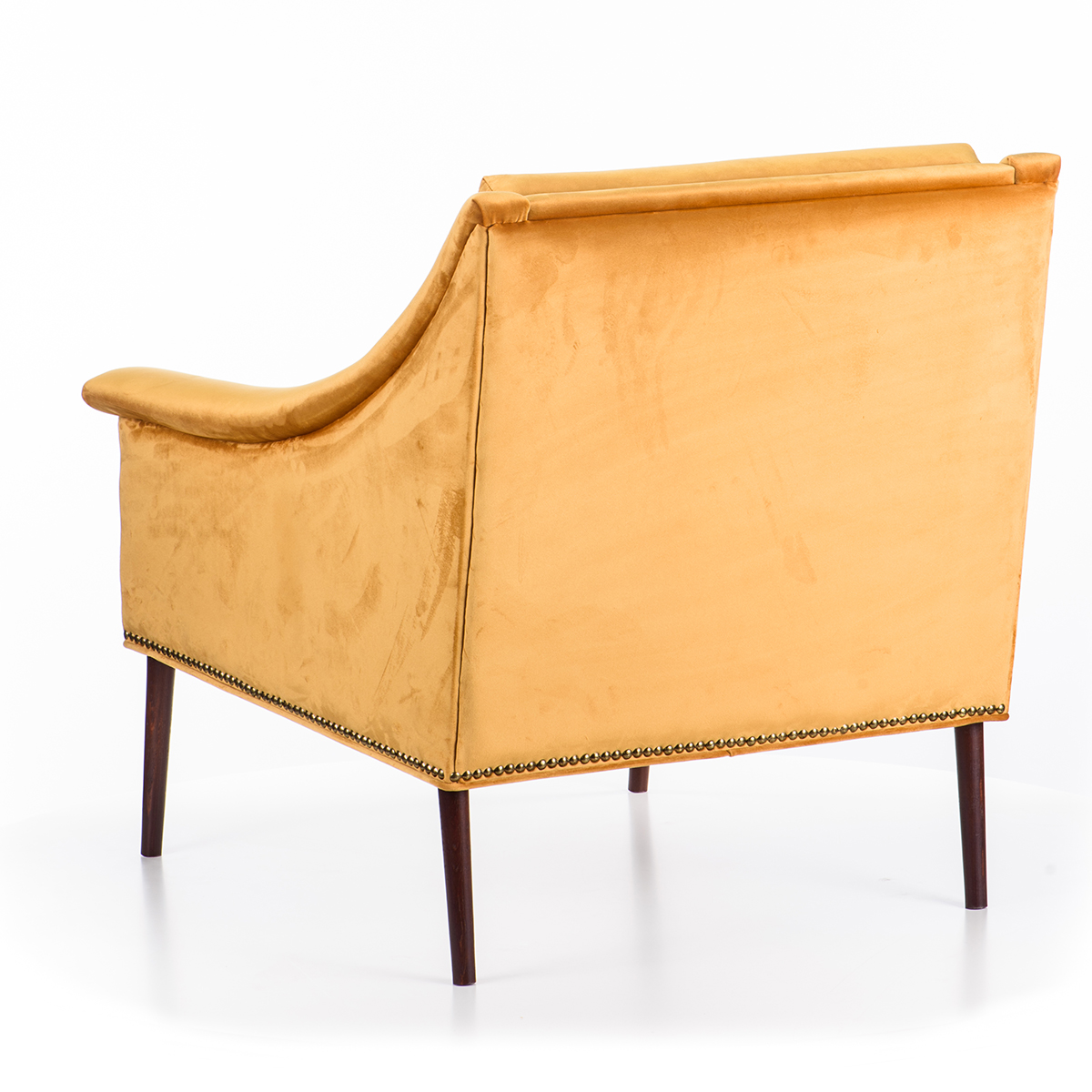 The structure of the armchair is made of beech mass construction. Upholstery and wood color at customer's request.
