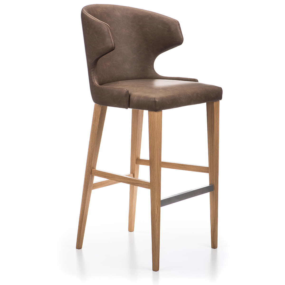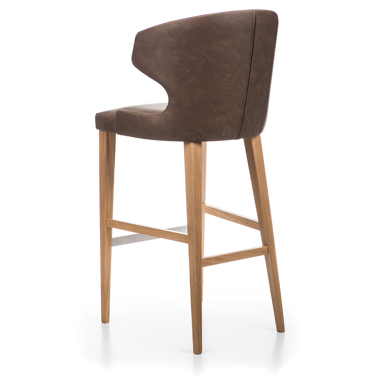 The construction of a bar chair is made of an oak mass. The backrest is made of upholstered veneer sheeting. Upholstery and wood color at customer's request.