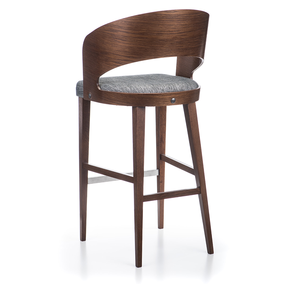 This bar stool has an improved design and oak-veneered wood décor and the décor that covers the backrest and highlights the elegance of the entire Rondo LINE. Its proven comfort and warmth will help you elect this particular piece of furniture for furnishing restaurants or cafeterias.