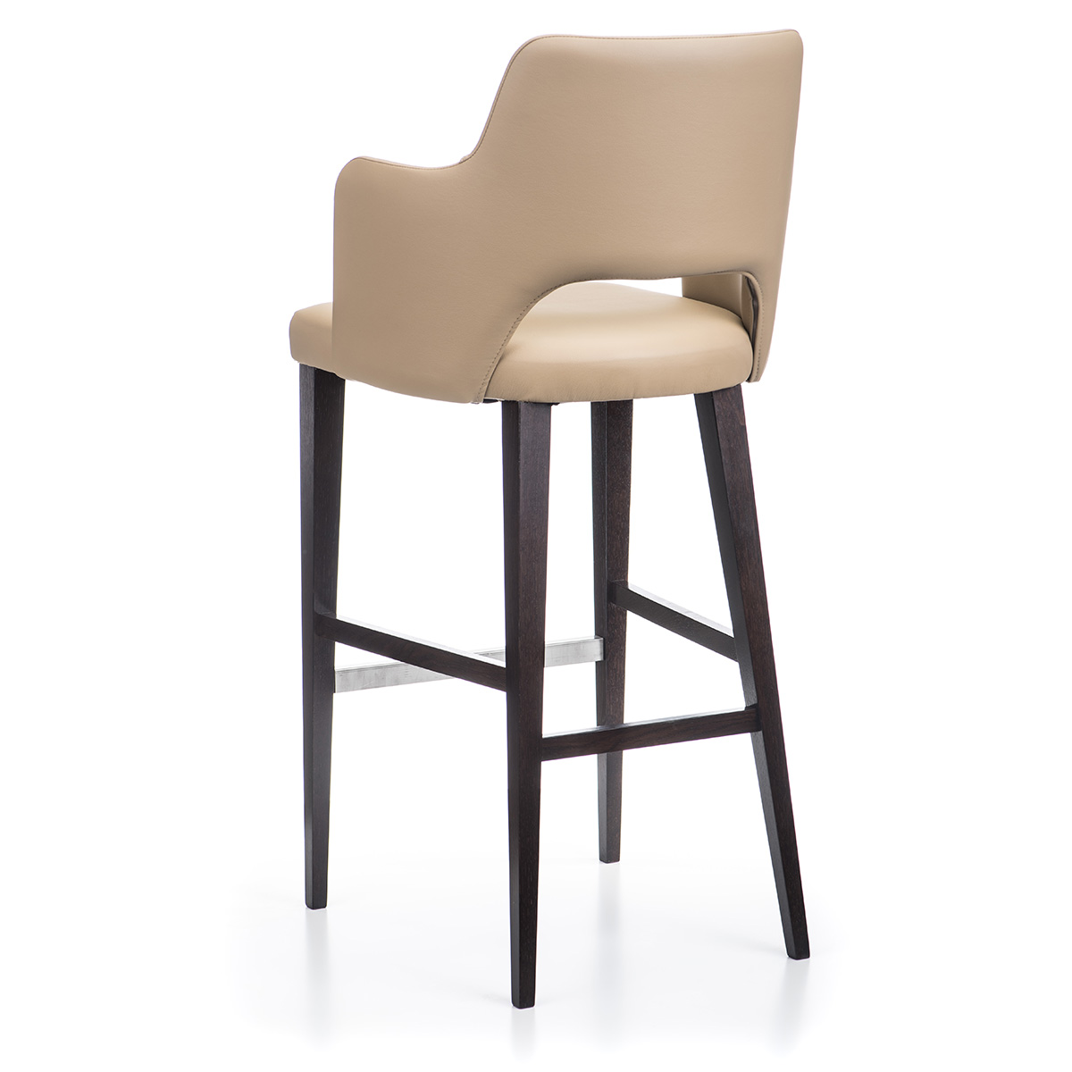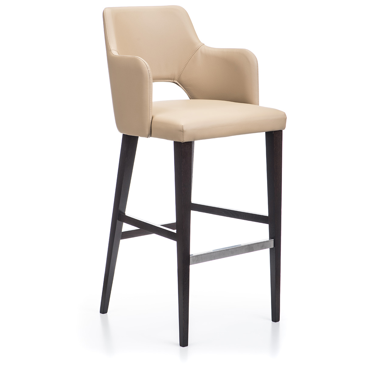 The construction of a bar chair is made of an oak mass. The backrest is made of upholstered veneer sheeting. Upholstery and wood color at customer's request.