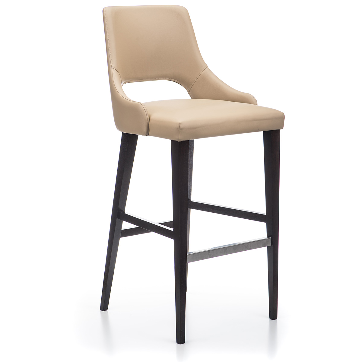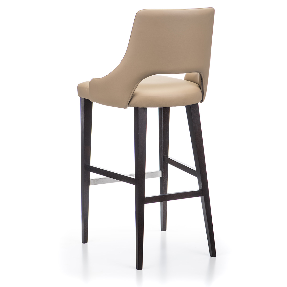 The construction of the bar chair is made of oak mass. The backrest is made of upholstered veneer sheeting. Upholstery and wood color at customer's request.